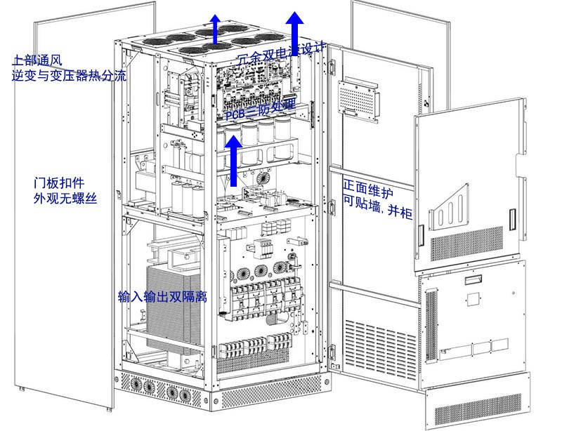 ? 通風(fēng)方式下進(jìn)上出,自然對(duì)流,獨(dú)立風(fēng)道,熱分流設(shè)計(jì)